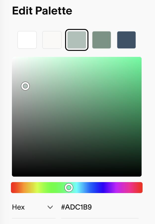 From left to right in the edit screen above they run light to dark and they’ll correspond to the text colours and the colours of the sections, buttons, calls to actions, blog styles and other collections like events, services etc etc.