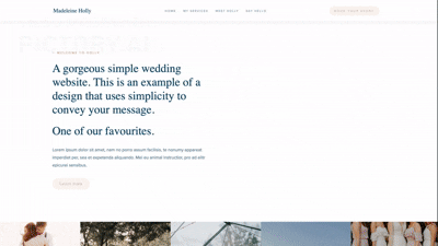The first of 3 wedding website designs. Very clean, subtle colours that compliment the images you decide to use.